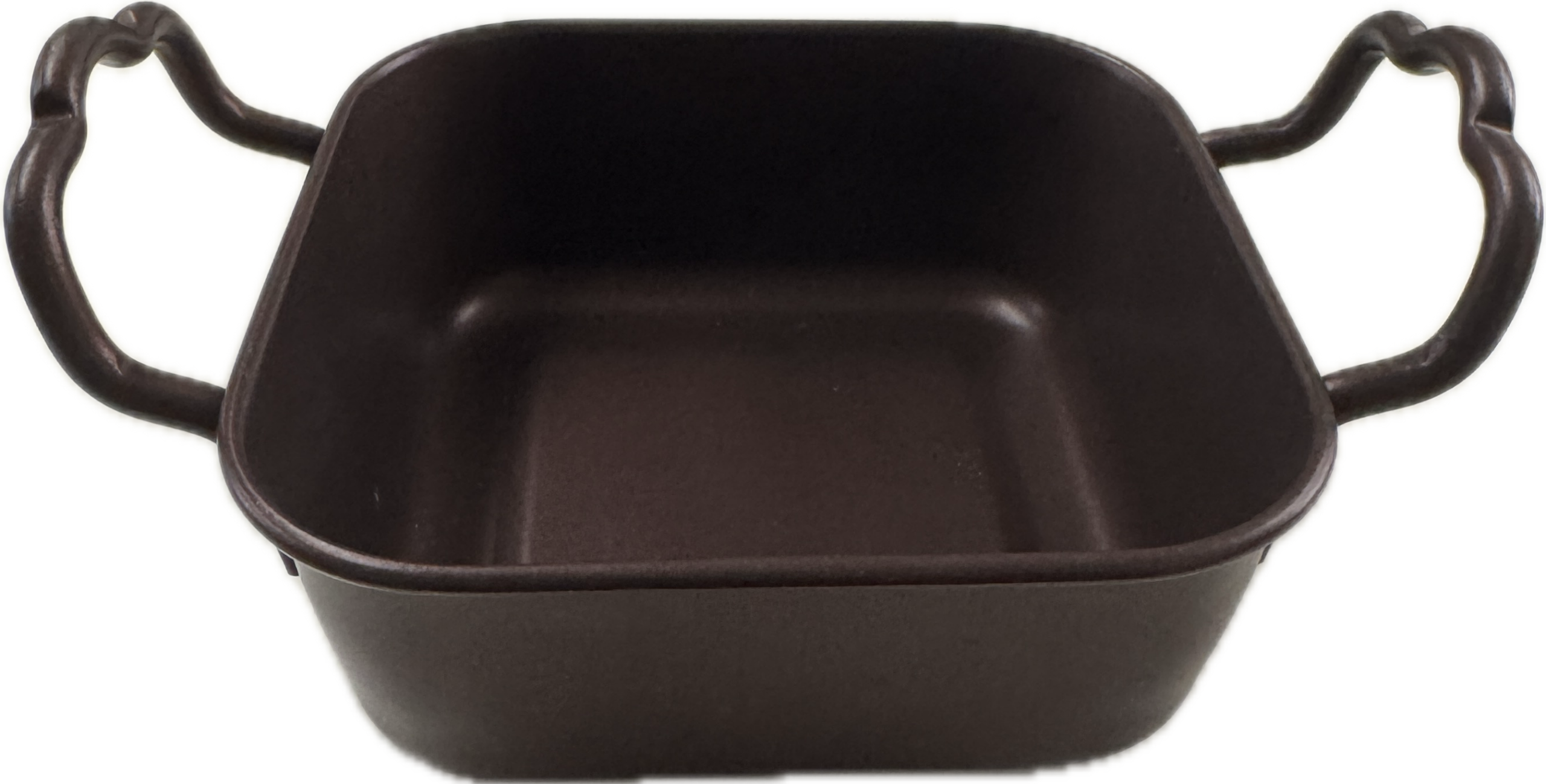Σαγάνι Σερβιρίσματος Ανοξείδωτο σε copper matt satin φινίρισμα με χερούλια.Οι ωφέλιμες διαστάσεις του σαγανιού είναι 11,5×11,5×5 CM. Οι διαστάσεις με τα χερούλια είναι 16×11,5×5 CM