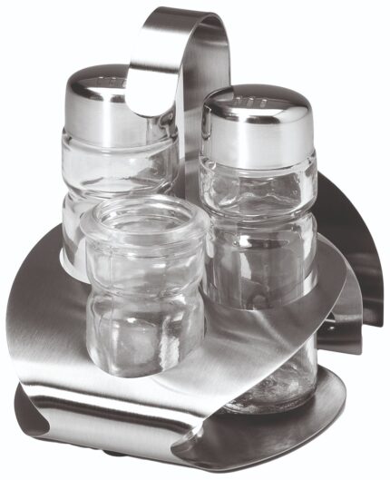 Περιλαμβάνει αλατιέρα, πιπεριέρα, μουσταρδιέρα και πετσετοθήκη.